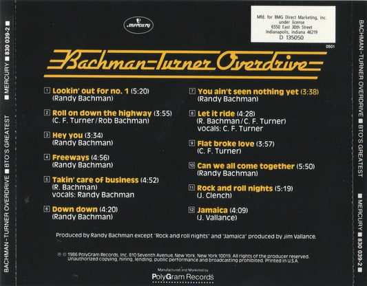 BACHMAN-TURNER OVERDRIVE - GREATEST HITS | CD USADO