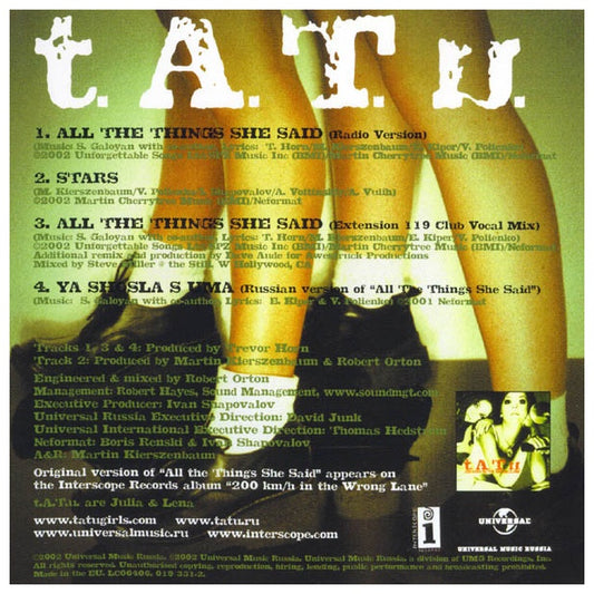 T.A.T.U. - ALL THE THINGS SHE SAID | CD SINGLE USADO