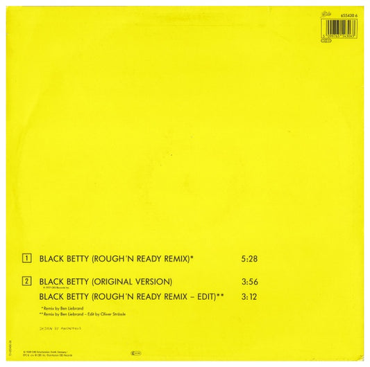 RAM JAM - BLACK BETTY (REMIX) (ORIGINAL VERSION) | 12" MAXI SINGLE USADO