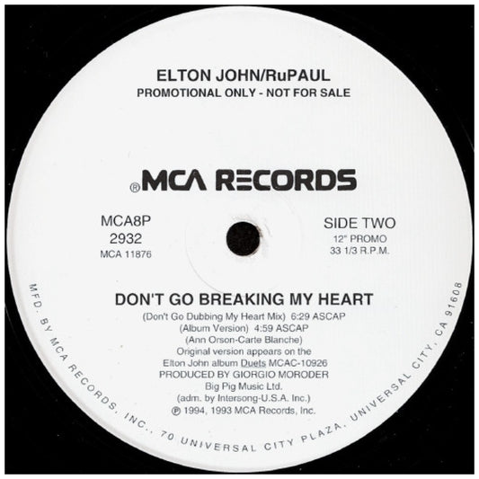 ELTON JOHN/RuPAUL - DON'T GO BREAKING MY HEART (PROMO COPY) | 12" MAXI SINGLE VINILO USADO