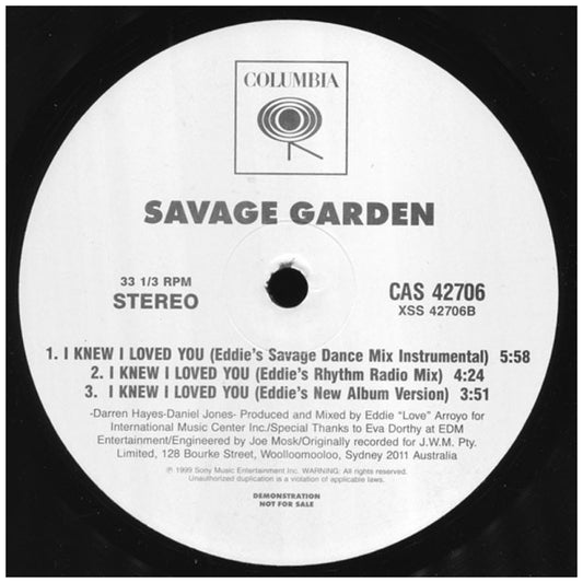 SAVAGE GARDEN - I KNEW I LOVE YOU (DANCE MIX) | 12" MAXI SINGLE VINILO USADO