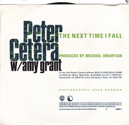 PETER CETERA FT. AMY GRANT - THE NEXT TIME I FALL (REMIX) | 7" SINGLE VINILO USADO