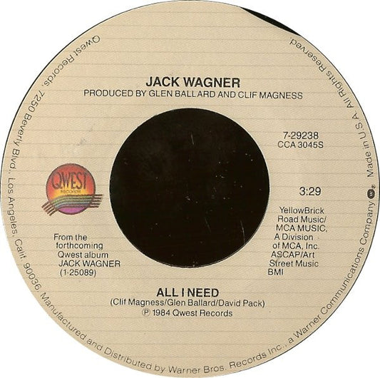 JACK WAGNER - ALL I NEED | 7" SINGLE VINILO USADO
