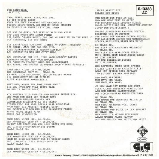 FALCO - DER KOMMISSAR | 7'' SINGLE VINILO USADO