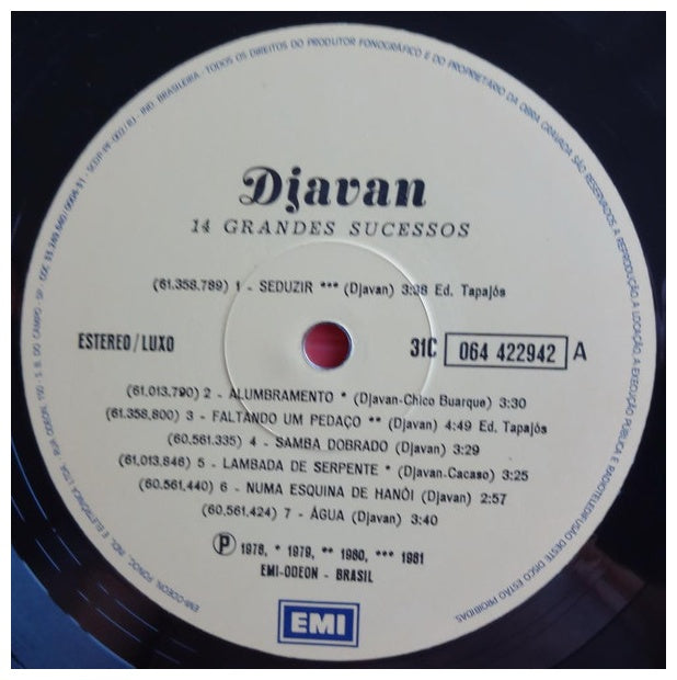 DJAVAN - 14 GRANDES SUCESSOS - EDICIÓN ORIGINAL DE BRASIL DE 1981 - VINILO USADO EN EXCELENTES CONDICIONES (NM)