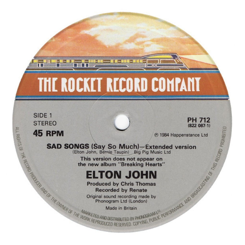 ELTON JOHN - SAD SONGS (SAY SO MUCH) (EXTENDED VERSION) - EDICIÓN ORIGINAL DE UK DE 1984 - VINILO USADO EN EXCELENTES CONDICIONES (VG++)