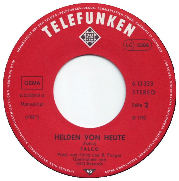 Falco - Der Kommissar - EDICION ORIGINAL DE GERMANY DE 1981 - VINILO USADO EN EXCELENTES CONDICIONES (VG++)