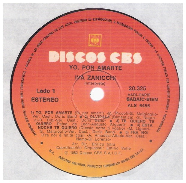 IVA ZANICCHI - YO, POR AMARTE - EDICION ORIGINAL DE ARGENTINA DE 1982 - VINILO USADO EN EXCELENTES CONDICIONES (VG+)