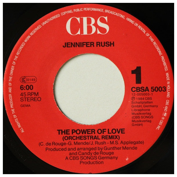 JENNIFER RUSH - THE POWER OF LOVE (ORCHESTRAL Remix) - EDICIÓN ORIGINAL DE GERMANY DE 1985 - VINILO USADO EN EXCELENTES CONDICIONES (VG++)