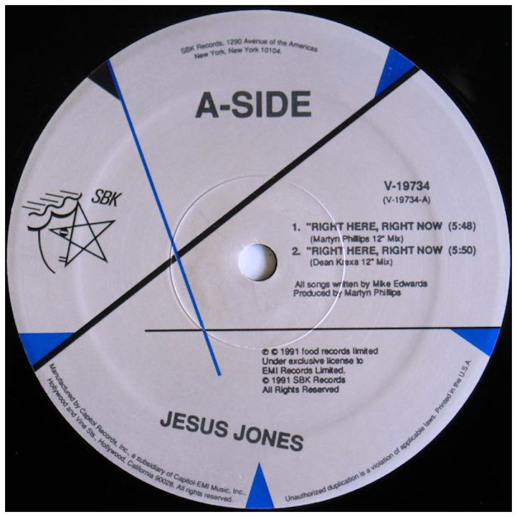 JESUS JONES - RIGHT HERE, RIGHT NOW - EDICIÓN ORIGINAL DE USA DE 1991 - VINILO USADO EN EXCELENTES CONDICIONES (VG++)