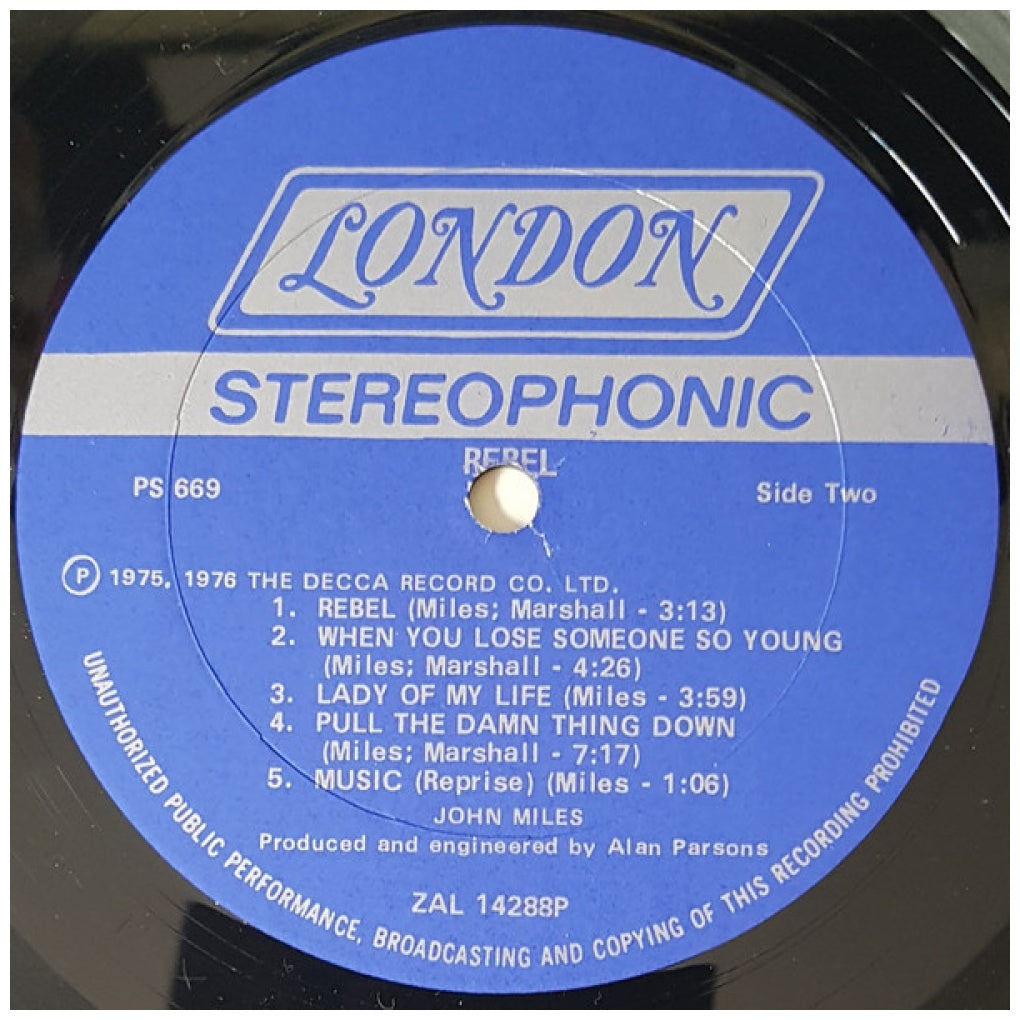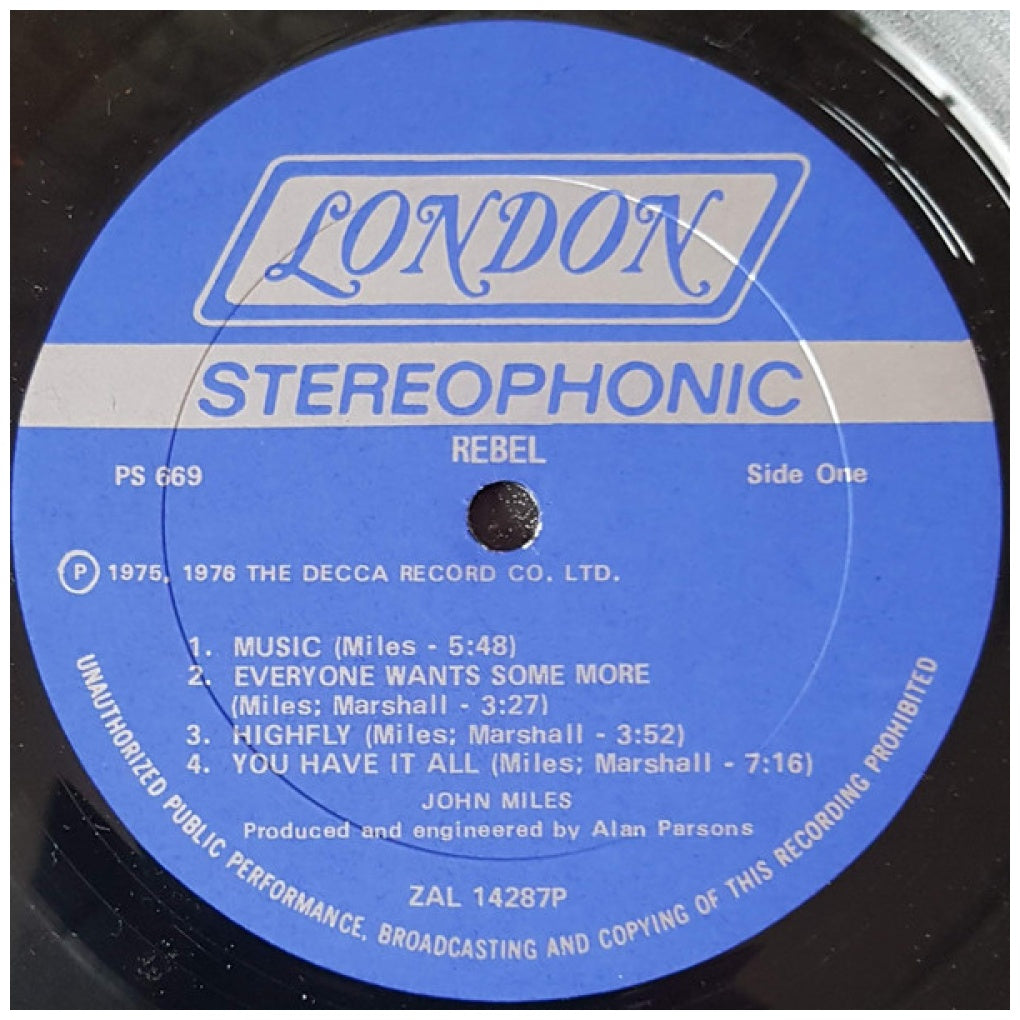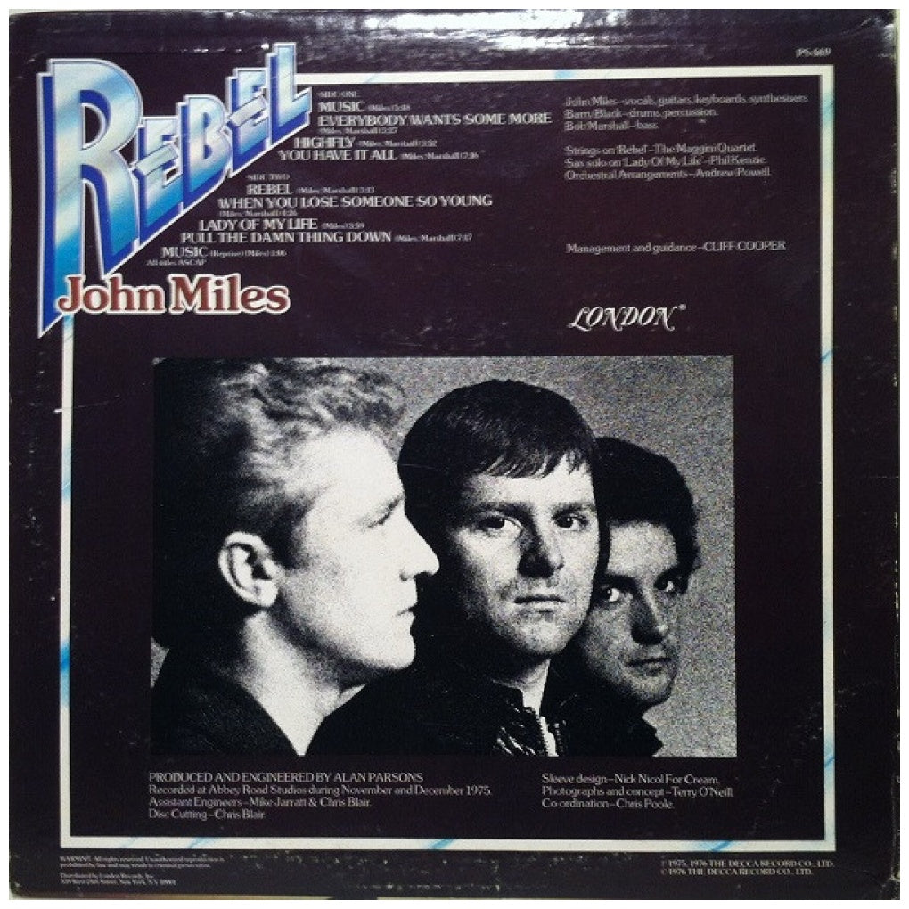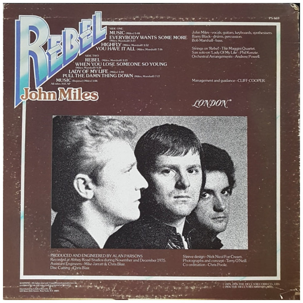 JOHN MILES - REBEL - EDICIÓN ORIGINAL DE USA DE 1976 - VINILO USADO EN EXCELENTES CONDICIONES (VG++)