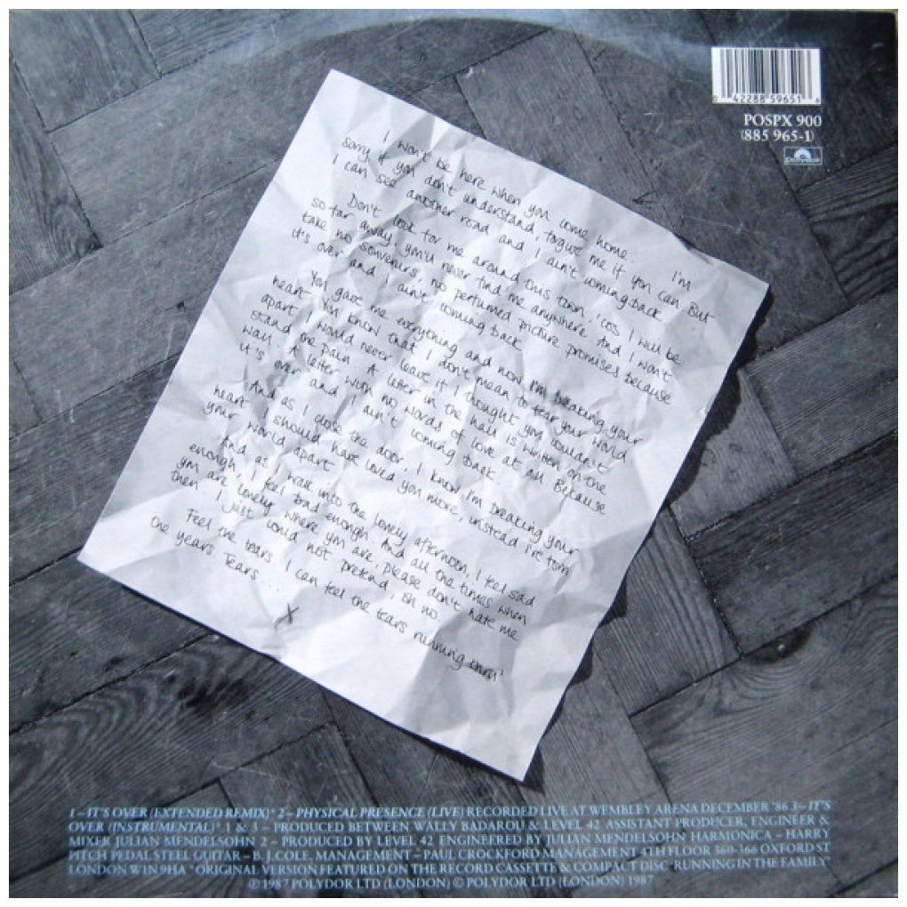 LEVEL 42 - IT'S OVER - EDICIÓN ORIGINAL DE EU DE 1987 - VINILO USADO EN EXCELENTES CONDICIONES (VG++)