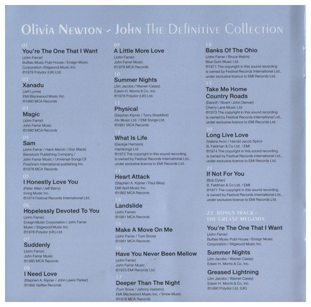 OLIVIA NEWTON-JOHN - DEFINITIVE COLLECTION | CD