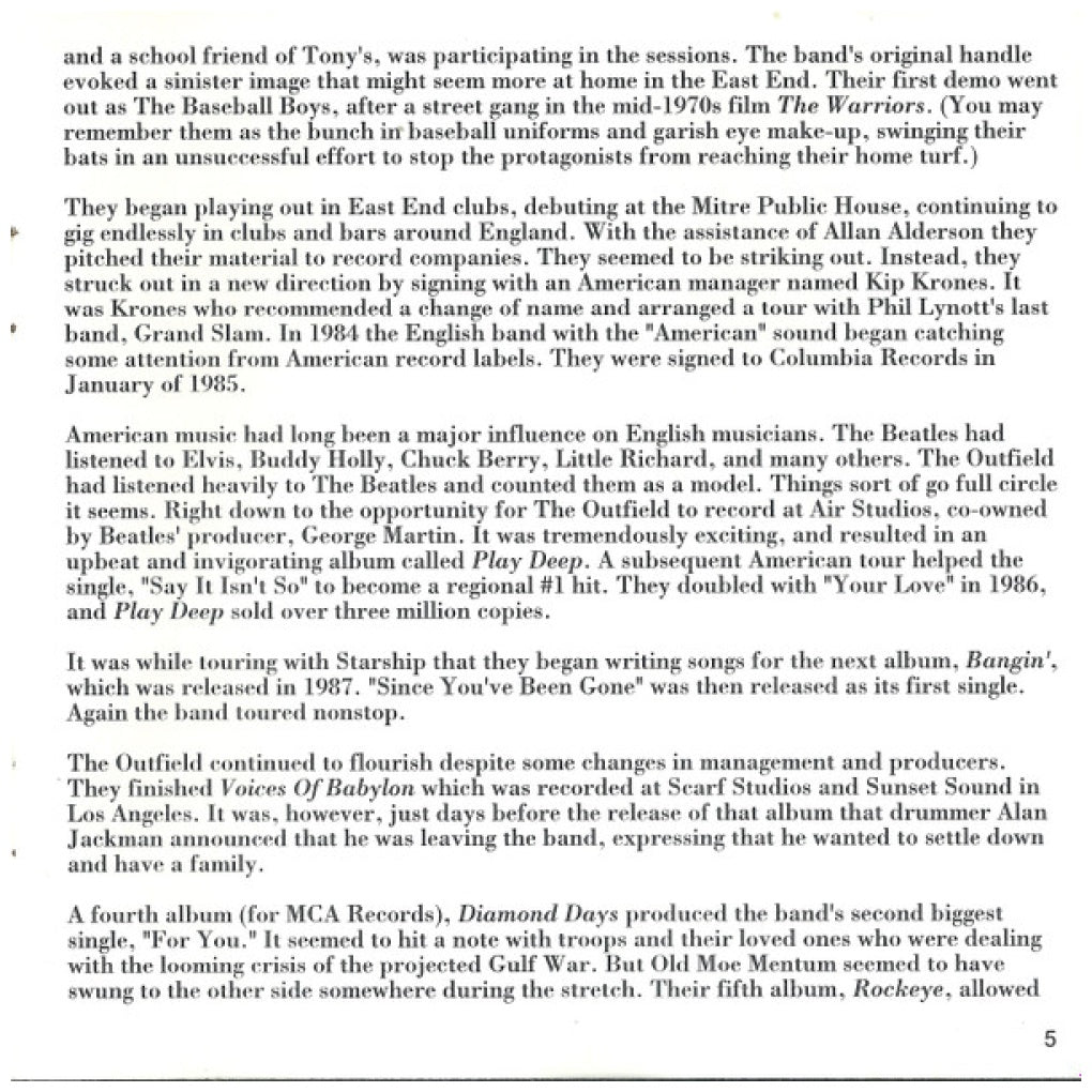 OUTFIELD - BIG INNINGS: THE BEST | CD USADO