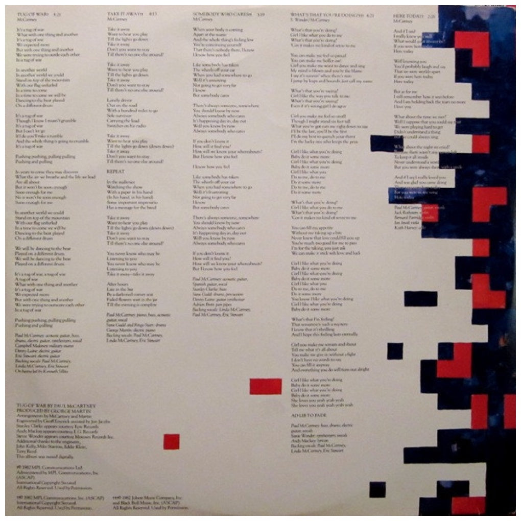 PAUL McCARTNEY - TUG OF WAR - EDICIÓN ORIGINAL DE USA DE 1982 - VINILO USADO EN EXCELENTES CONDICIONES (VG++)