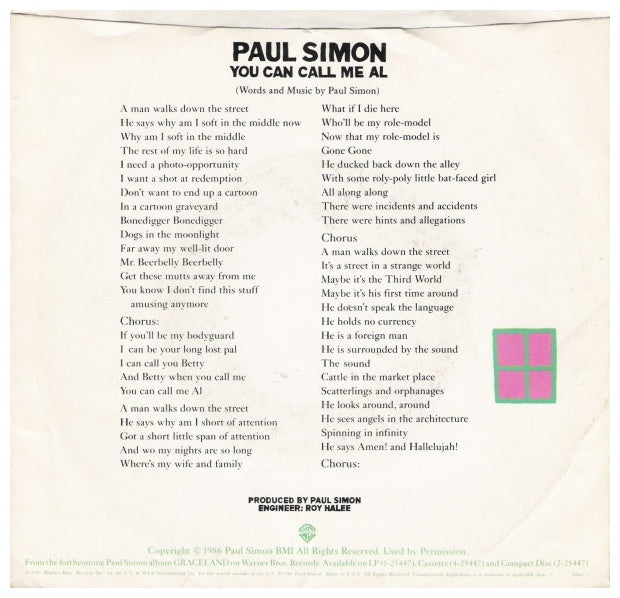 Paul Simon - You Can Call Me Al - EDICION ORIGINAL DE SPAIN DE 1986 - VINILO USADO EN EXCELENTES CONDICIONES (VG+)