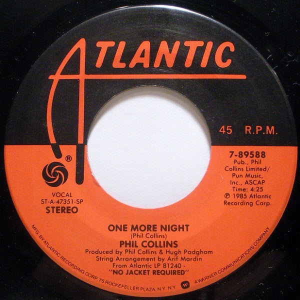 PHIL COLLINS - ONE MORE NIGHT (COVER) - EDICION ORIGINAL DE US DE 1985 - VINILO USADO EN EXCELENTES CONDICIONES (VG++)