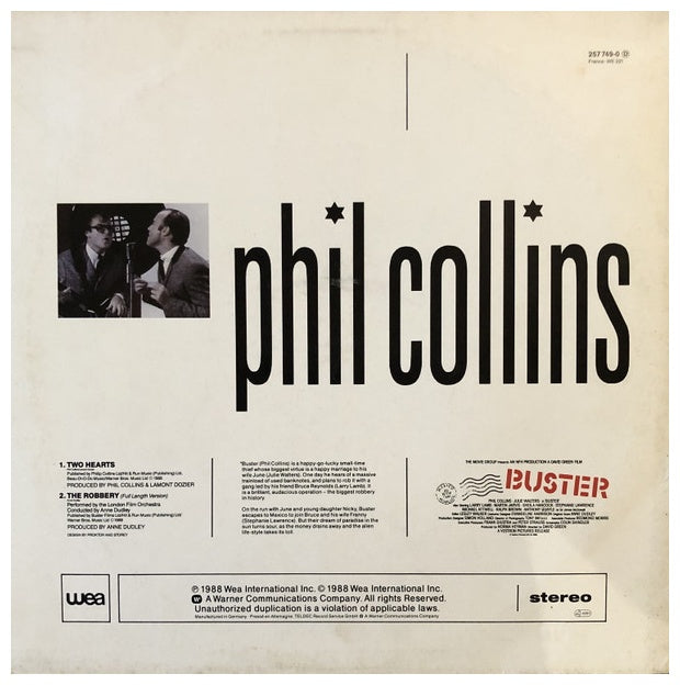 PHIL COLLINS - TWO HEARTS - EDICION ORIGINAL DE GERMANY DE 1988 - VINILO USADO EN EXCELENTES CONDICIONES (VG++)