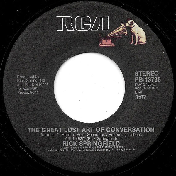 RICK SPRINGFIELD - LOVE SOMEBODY - EDICION ORIGINAL DE US DE 1984 - VINILO USADO EN EXCELENTES CONDICIONES (VG+2)