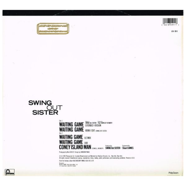 Swing Out Sister - Waiting Game | 12'' MAXI SINGLE - EDICION ORIGINAL DE USA DE 1989 - VINILO USADO EN EXCELENTES CONDICIONES (VG++)