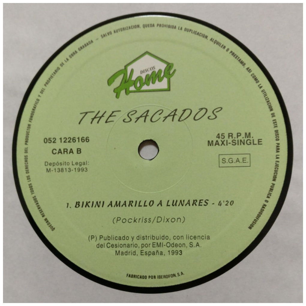 THE SACADOS - MAMBO JAMBO/BIKINI A LUNARES AMARILLO - EDICIÓN ORIGINAL DE ALEMANIA DE 1993 - VINILO USADO EN EXCELENTES CONDICIONES (VG++)